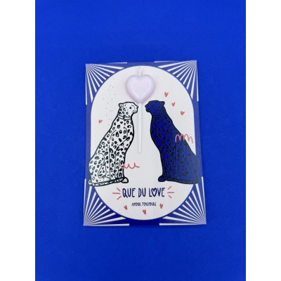 Two loving panthers, a candle in the shape of a pink heart, and an atmosphere that's both fun and romantic: the perfect card to celebrate love in all its forms 🐆💗